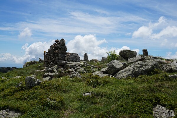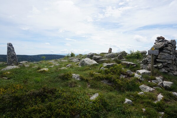 Me voici au sommet. On y trouve des Rochers en vrac, et un empilage de pierres,