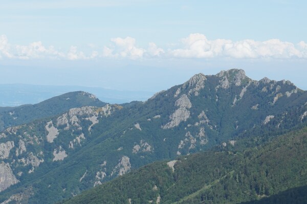 Vers le nord, au centre, le Serre du Mouton ; à sa droite, le sommet de
