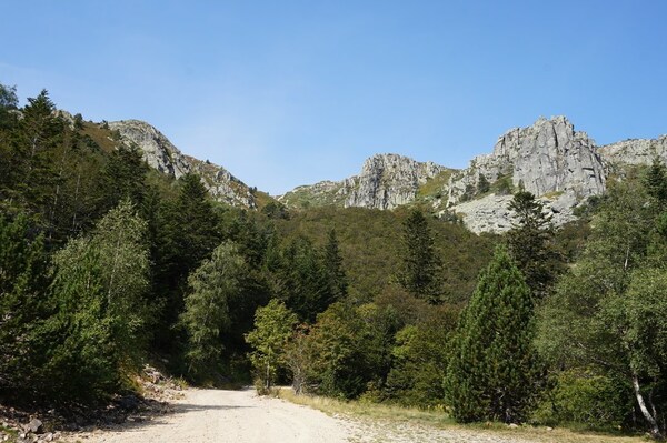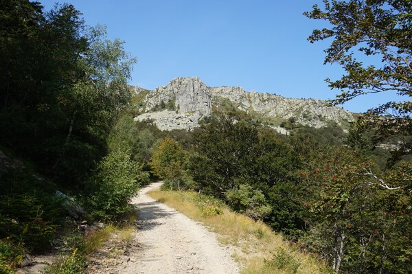 La route forestière en provenance du chalet de l'aigle, et le Roc des Échelles