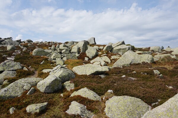Autour de moi, des pierres affleurent maintenant parmi la végétation.