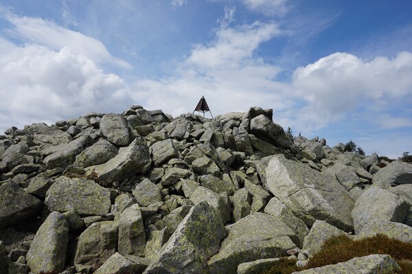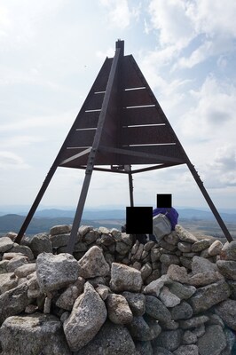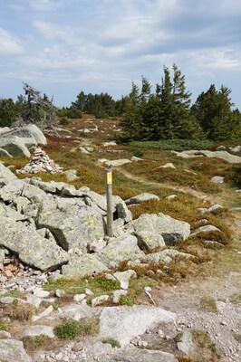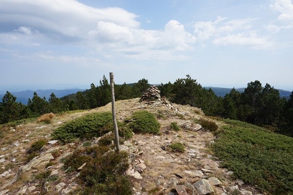 Sans surprise, cairn au sommet, et poteau en mauvais état.