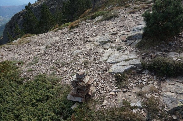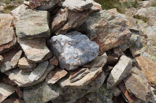 Notez que l'une des pierres du cairn est un gros morceau de quartz.