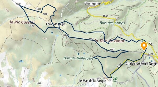 L'itinéraire habituel pour monter au Pic Cassini part du Mas de la Barque, où il