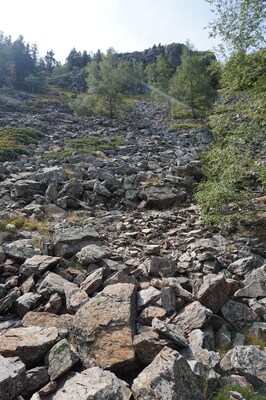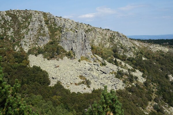 Enfin, gros plan sur le Rocher de l'Aigle et les éboulis en contrebas.
