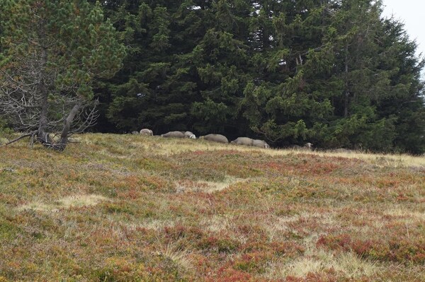 Le chemin du Pic Cassini ne passe pas très loin du troupeau de moutons, mais