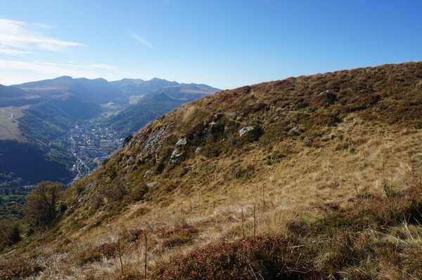 Le Mont-Dore et la haute vallée de la Dordogne deviennent visibles.