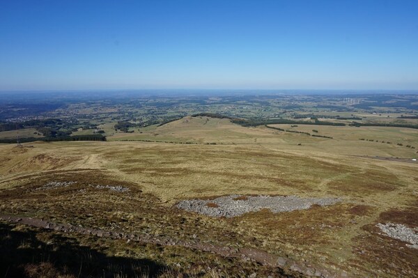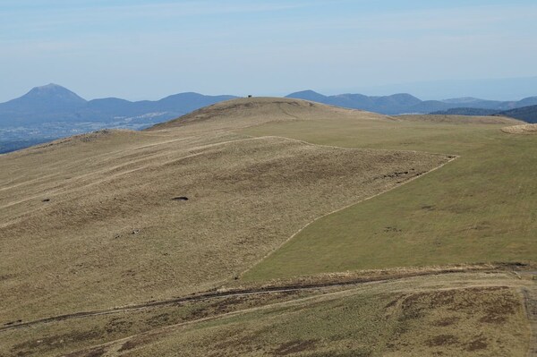 Vue vers le nord et la chaîne des Puys. Le petit sommet arrondi, au tiers droit,