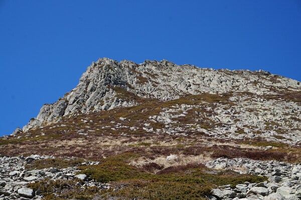 Le Rocher du Bec de l'Aigle, ainsi que les deux reliefs intermédiaires (1618m)