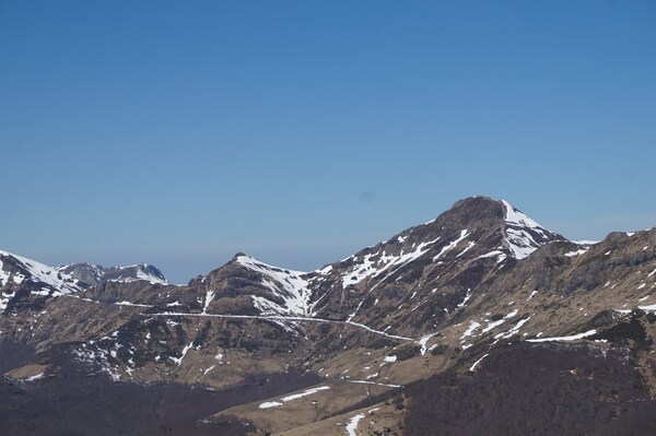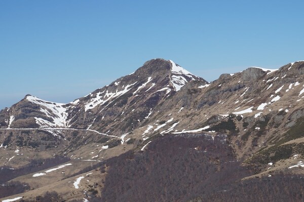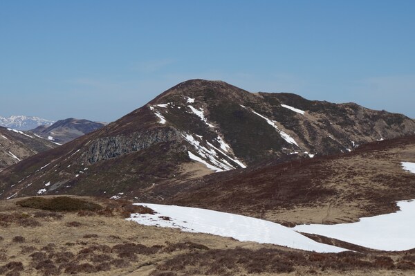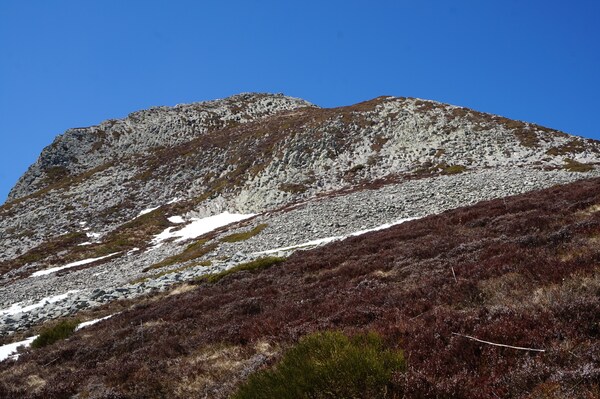 s'y attendre, il reste de la neige sur le flanc nord-ouest, le seul qui est