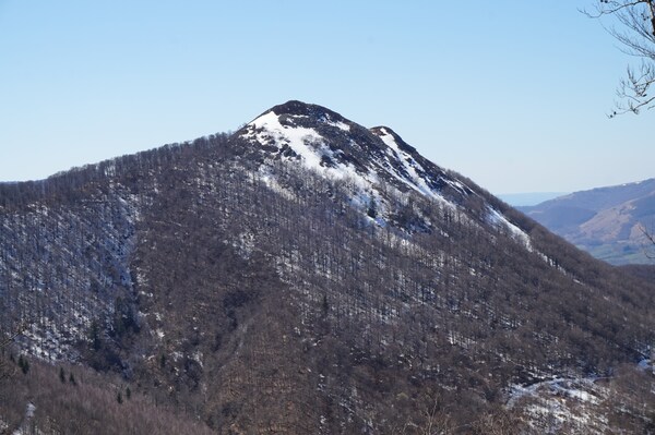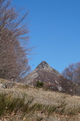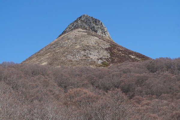 Le Puy Chavaroche, à l'aplomb du Griounou dont on voit tout juste le sommet, au
