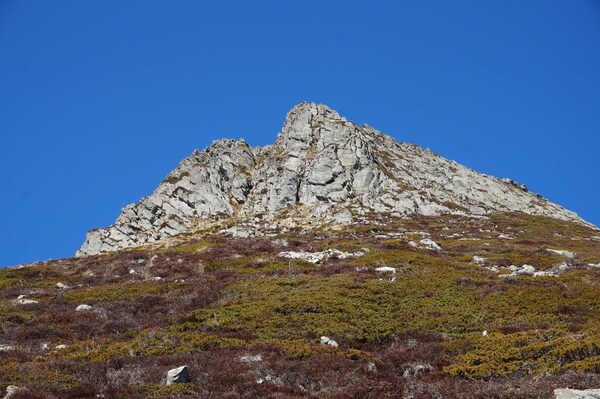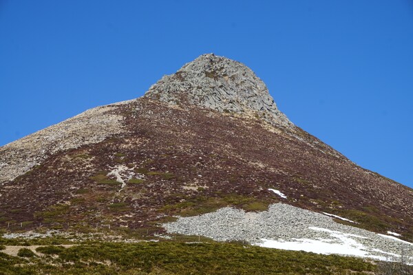 Le Griounou, et les ruines d'un buron à son pied, bien mises en évidence par la