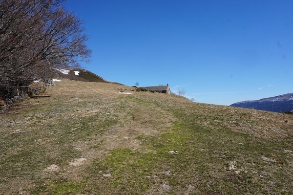 Le chemin sort des bois et arrive en zone d'estive proprement dite. Les premiers