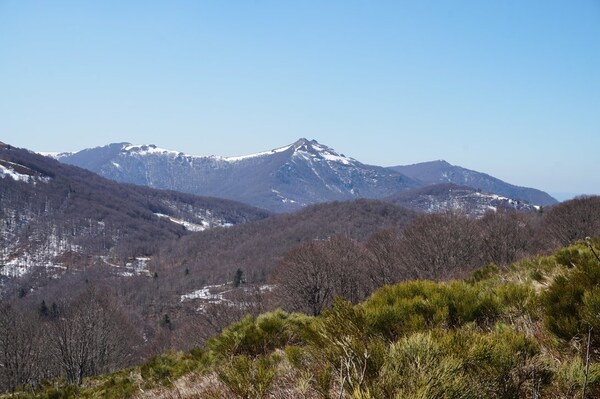 Gros plan sur les Monts Dore, visibles au loin. À droite, mais pas aussi loin,