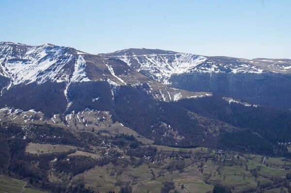 Tout à droite, le Puy Chavaroche, et tout à gauche, le Cassaïre et le Piquet.