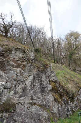 Gros plan sur le pilier, ainsi que la roche sur laquelle il est adossé. La paroi