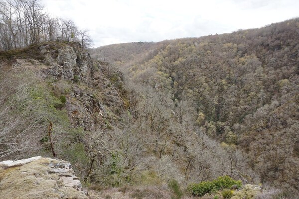 Le chemin est fortement pentu et descend rapidement vers la Luzège, visible en