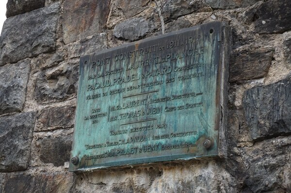 Deux plaques, sur ce pilier, gardent trace de la construction du pont...