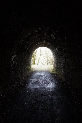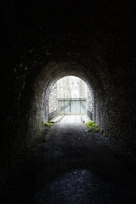 L'entrée du tunnel. Celui-ci est éclairé par des néons, mais le premier néon est