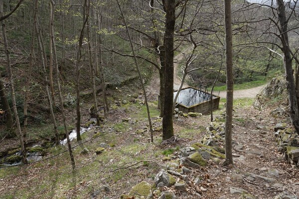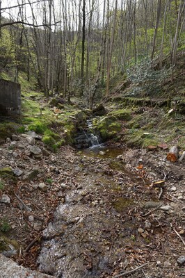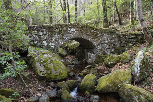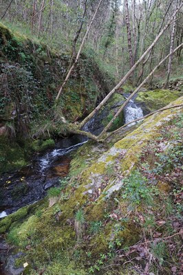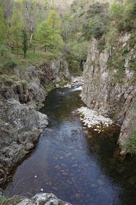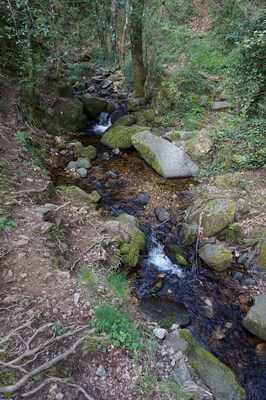 En amont du pont, le ruisseau traverse difficilement un chaos rocheux assez