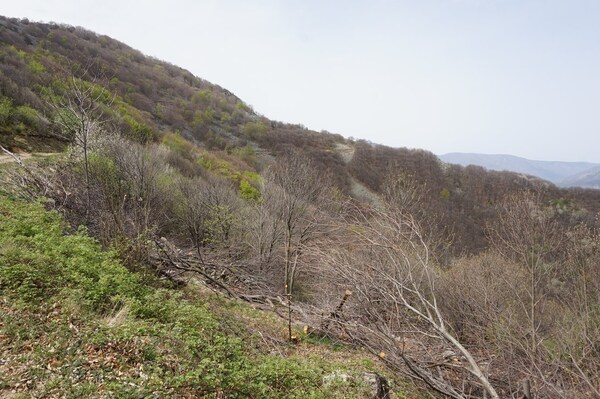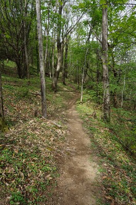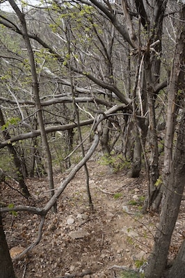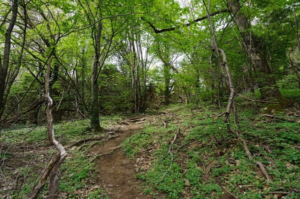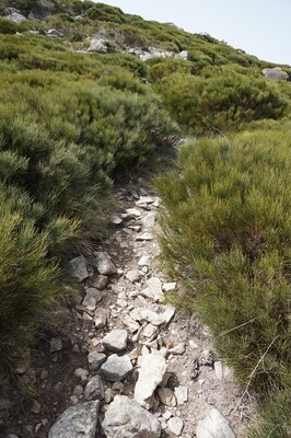 En guise de sentier, il s'agit plutôt d'une coupe franche parmis les arbustes.