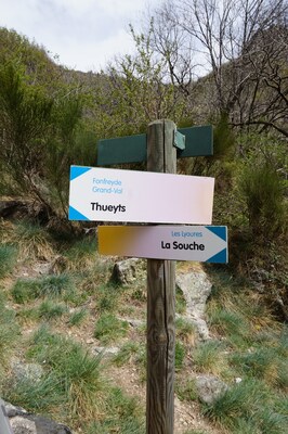 Départ à la sortie est de Thueyts, sur la nationale 102. Un belvédère permet