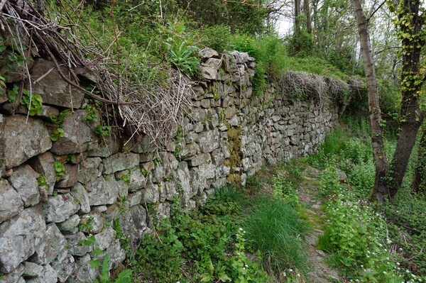 Le chemin monte le long d'un mur...