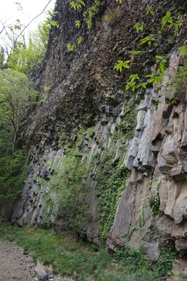 Le sentier descend le long de la Chaussée des Géants, dont la paroi est quelque