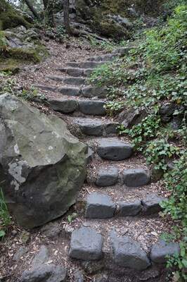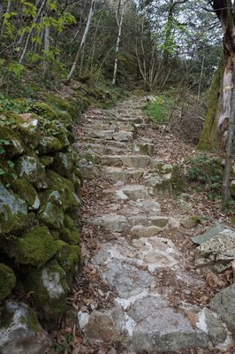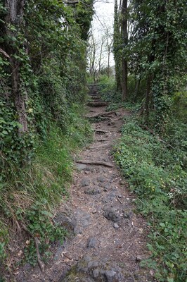 Celui-ci monte rapidement, tout d'abord par des marches de pierre.