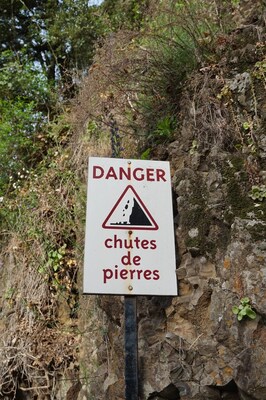 gauche du panneau avertissant du risque de chute de pierres ? C'est son