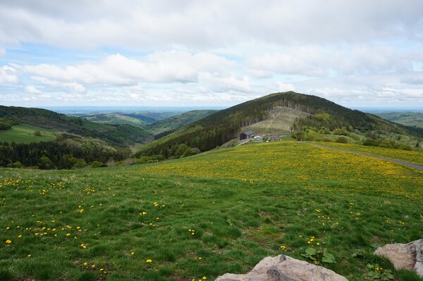 crête du Plomb du Cantal, qui se trouve au centre du champ.