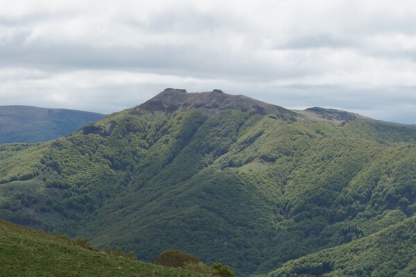 Gros plan sur le Puy de la Tourte, au fond, et la Roche Parlante à sa gauche,
