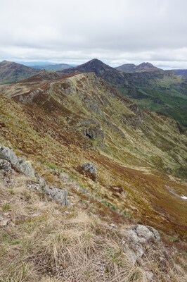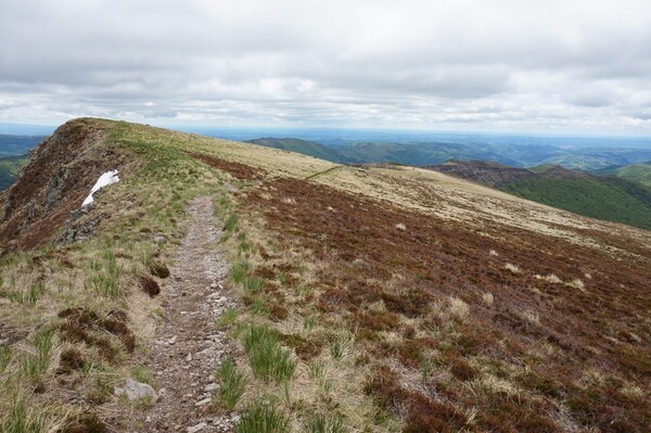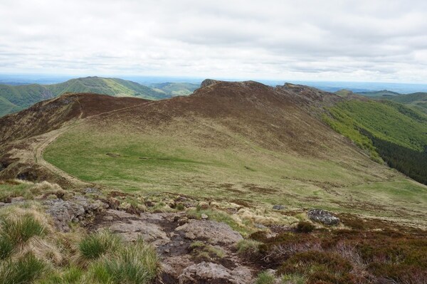 Depuis le sommet du Puy Chavaroche, la crête continue vers le col de Redondet.