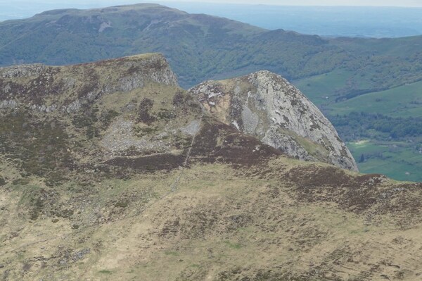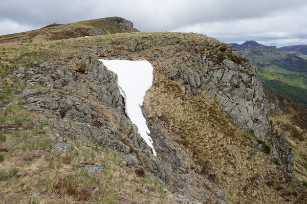 Gros plan sur la crête du Plomb du Cantal. On reconnaît de gauche à droite, le