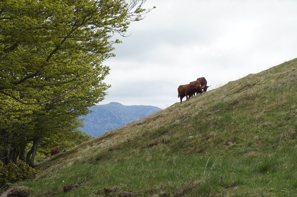 Courpou Sauvage à droite, surveillés par quelques vaches salers à l'estive.