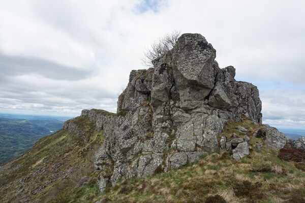 Dernière vue sur l'homme de pierre du Puy Chavaroche avant que le relief ne le