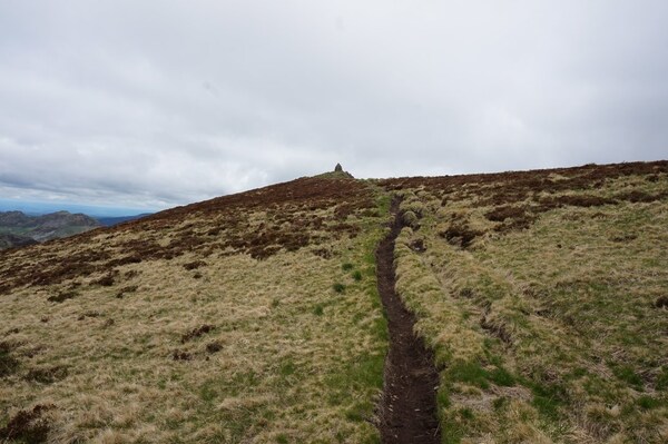 Gros plan sur le sommet. Le sentier va jusqu'au pied, puis le contourne vers la