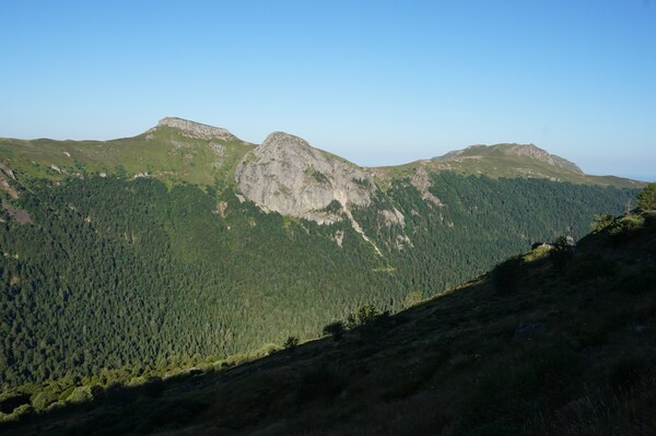 plan, de gauche à droite, le Puy d'Orset, la Roche Taillade et le Roc