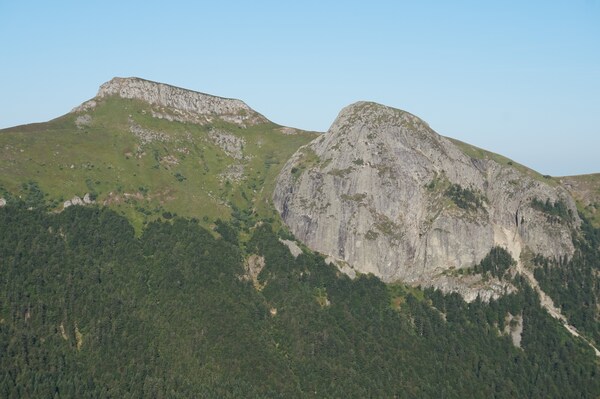 L'Impramau. Tout à gauche de sa crête, le Roc Brin. Cette zone boisée en