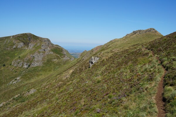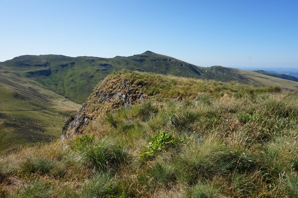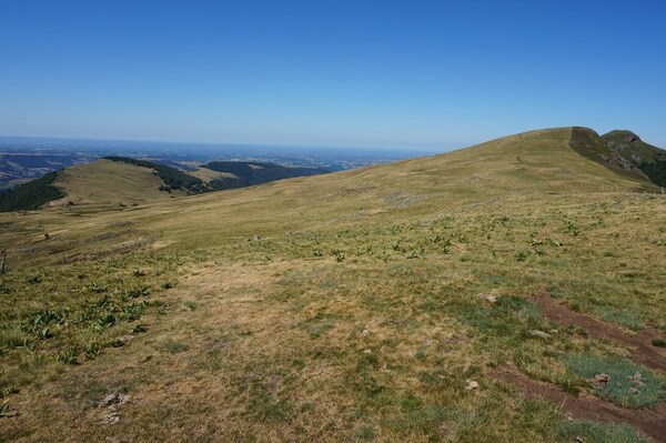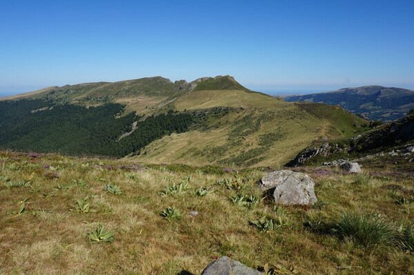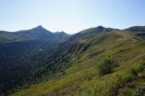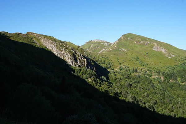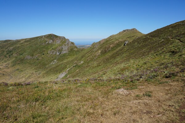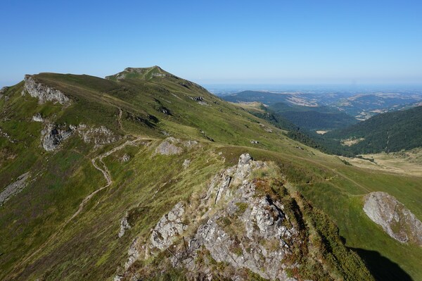 Puy de l'Usclade à droite. À gauche du Puy Griou au loin, la petite bosse