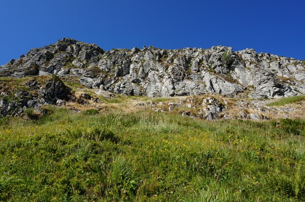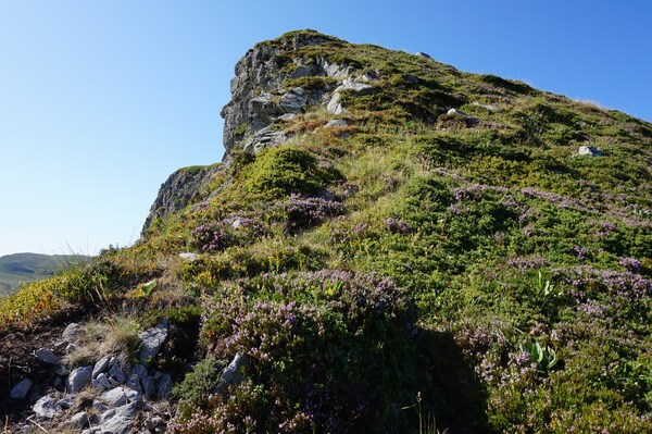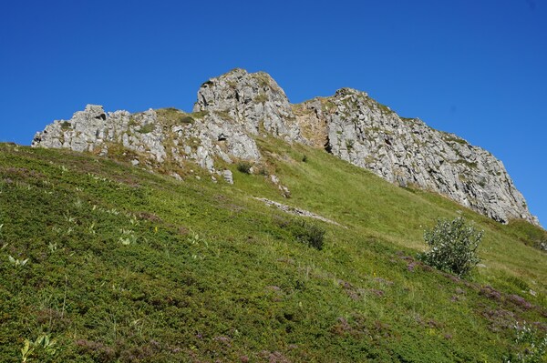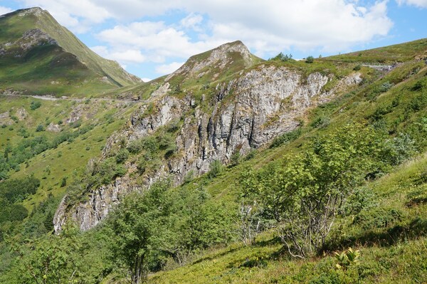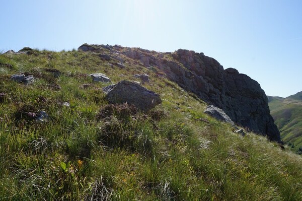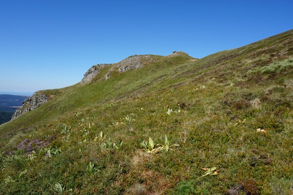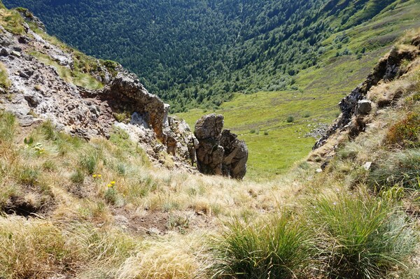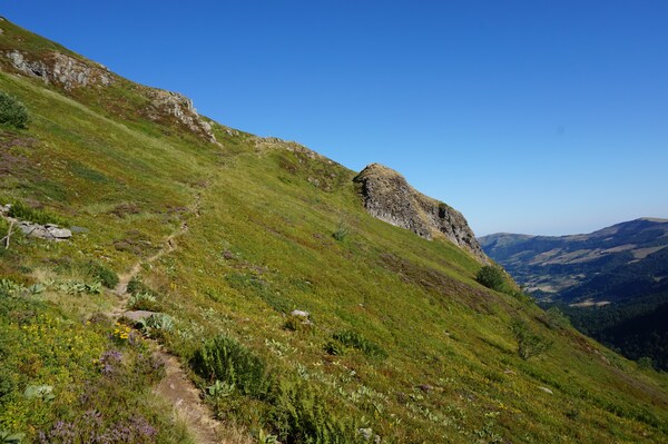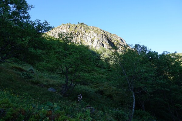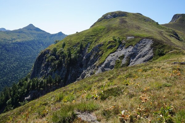 Je laisse ce faisant derrière moi le flanc moins abrupt du Roc d'Hozières.