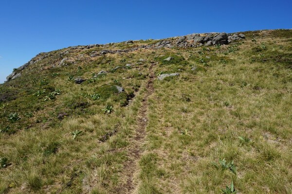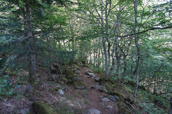 Le chemin est parfois à peine visible à travers la végétation plutôt dense.