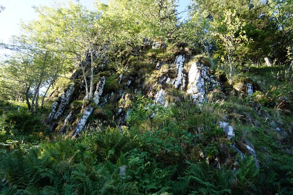 Le chemin traverse maintenant une zone boisée autour du pied de la Roche Noire.