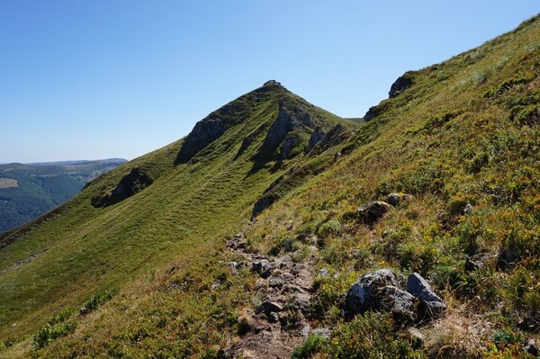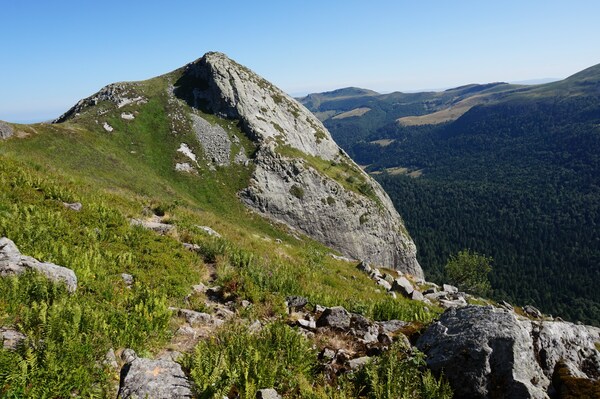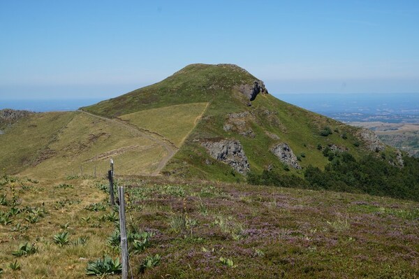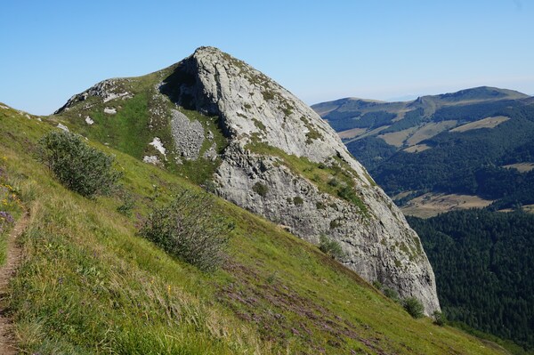 Au loin, en plus du Suc de Rond sur la gauche, apparaît le Rocher de l'Aygue sur