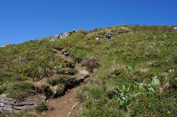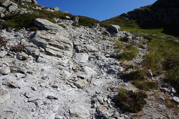 Le chemin semble inviter à suivre la crête de l'Impramau vers la gauche. Pour