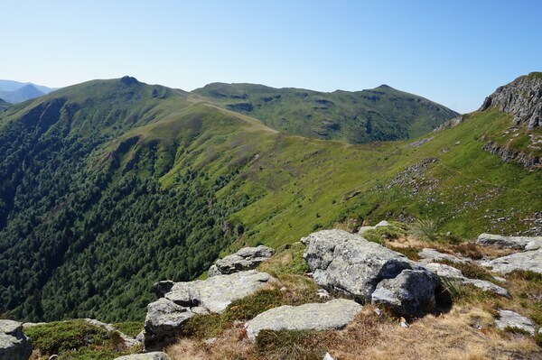 Notez également la bosse du Plomb du Cantal et le Puy Griou.