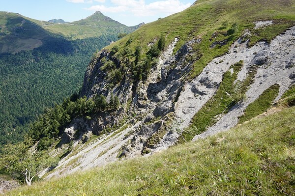 la brèche d'Enfloquet. Le Puy Violent est encore masqué par des reliefs