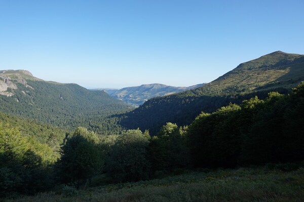la vallée du Rat, à droite, un affluent de la Maronne.