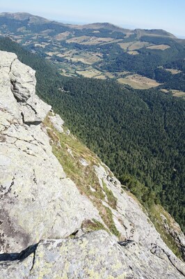 La faille au sommet. Au loin, on reconnaît entre autres, le Puy de l'Usclade à