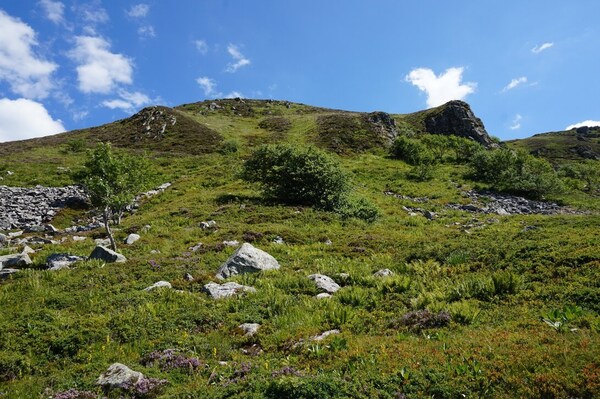 Je m'écarte du sentier pour suivre un mince tracé en direction du sommet.