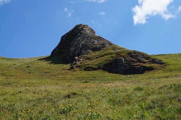 J'approche de la Roche Noire. De cette position, la bosse au sommet de la